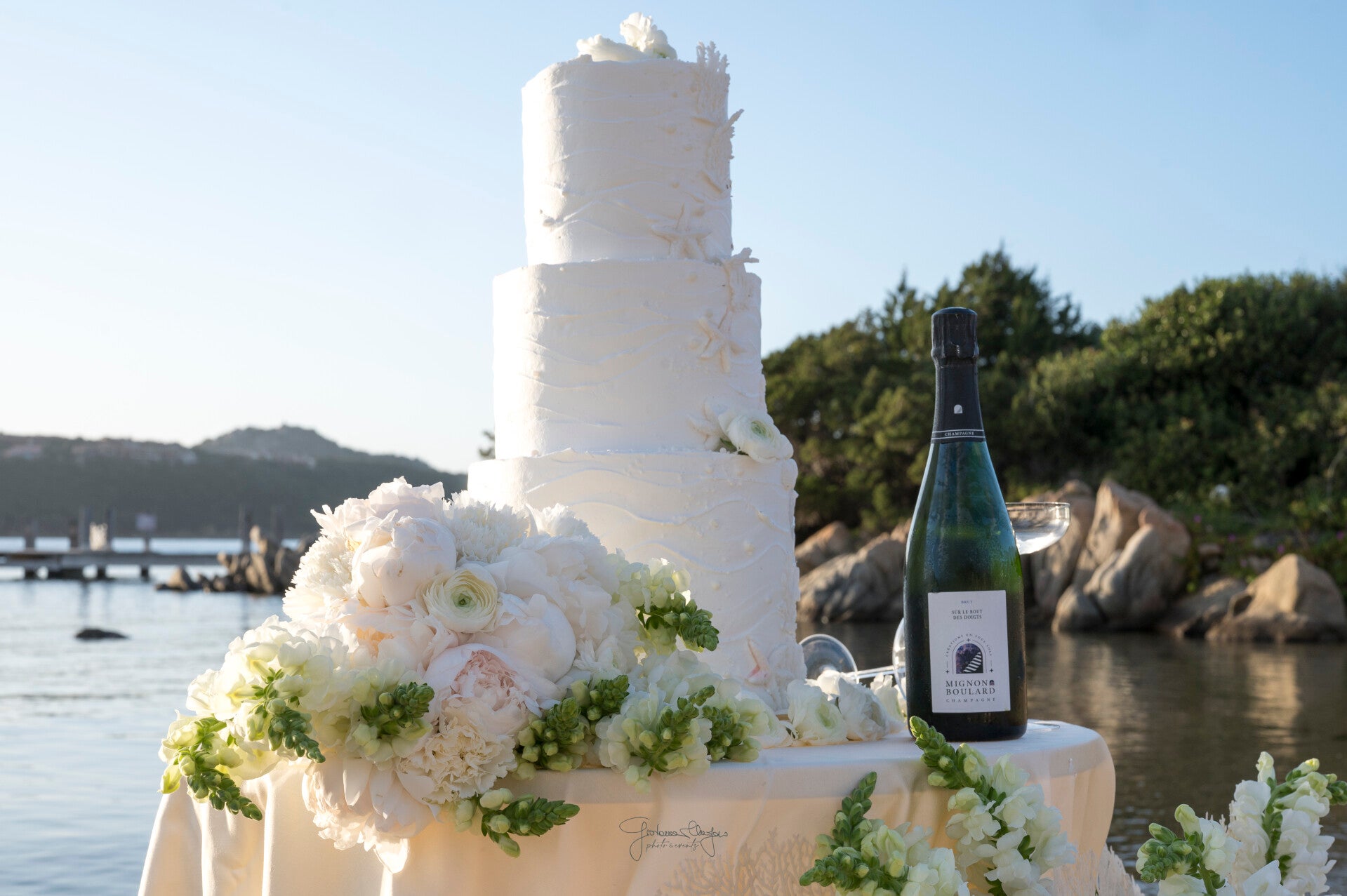 With carefully selected blooms, balanced compositions, and a bespoke artistic approach, each arrangement is designed to complement the sea, the light, and the natural beauty of the location with timeless sophistication.