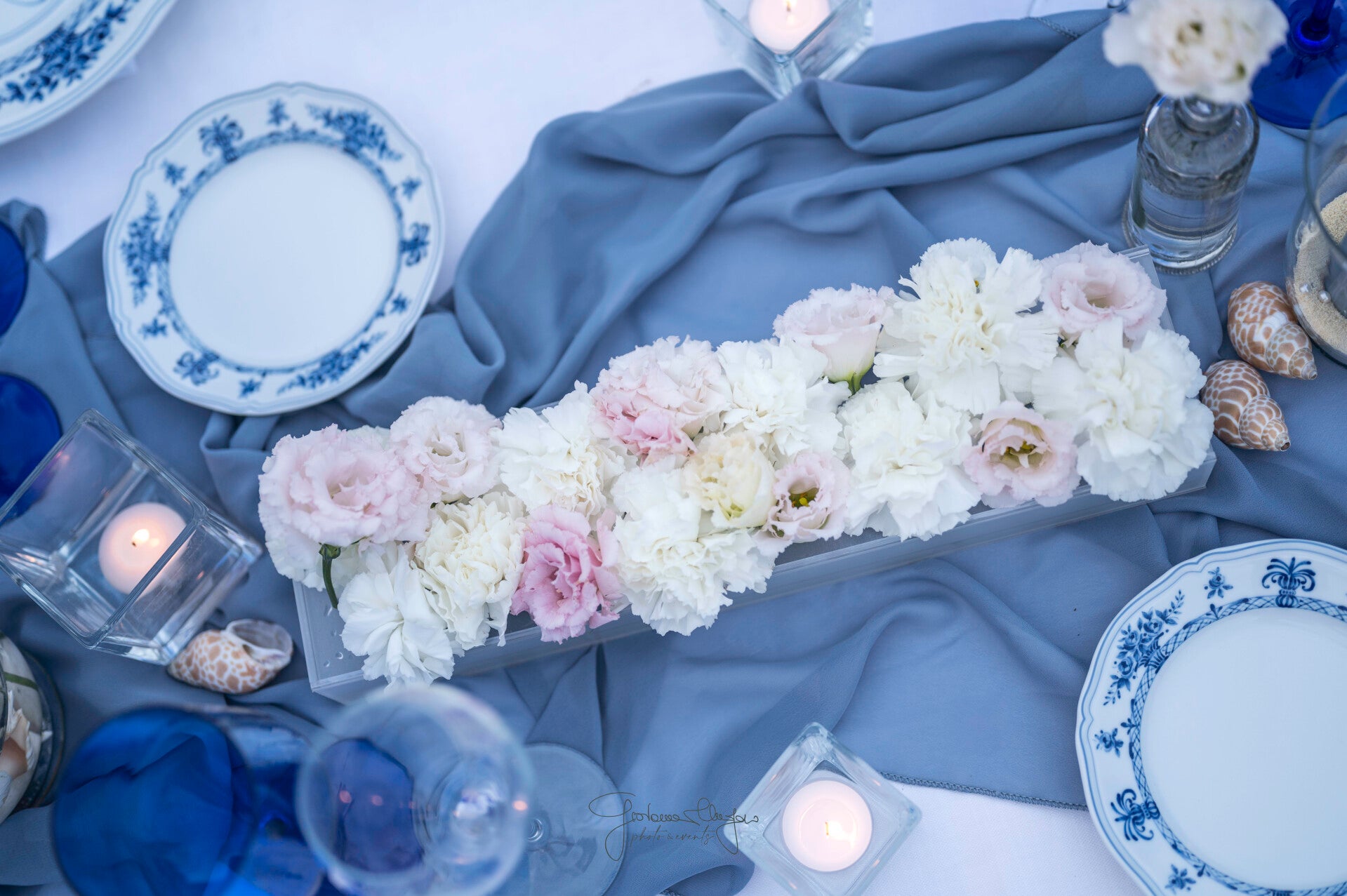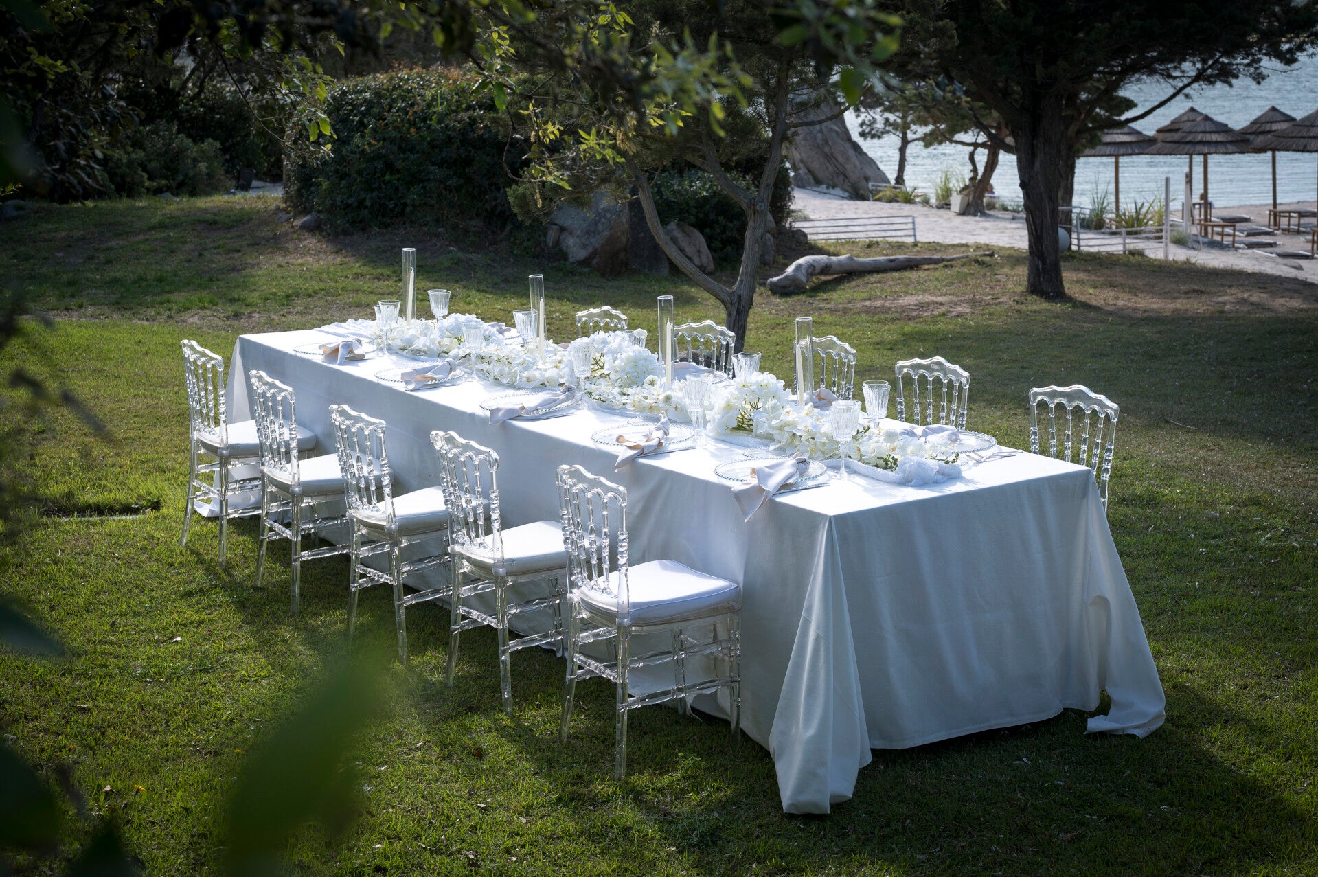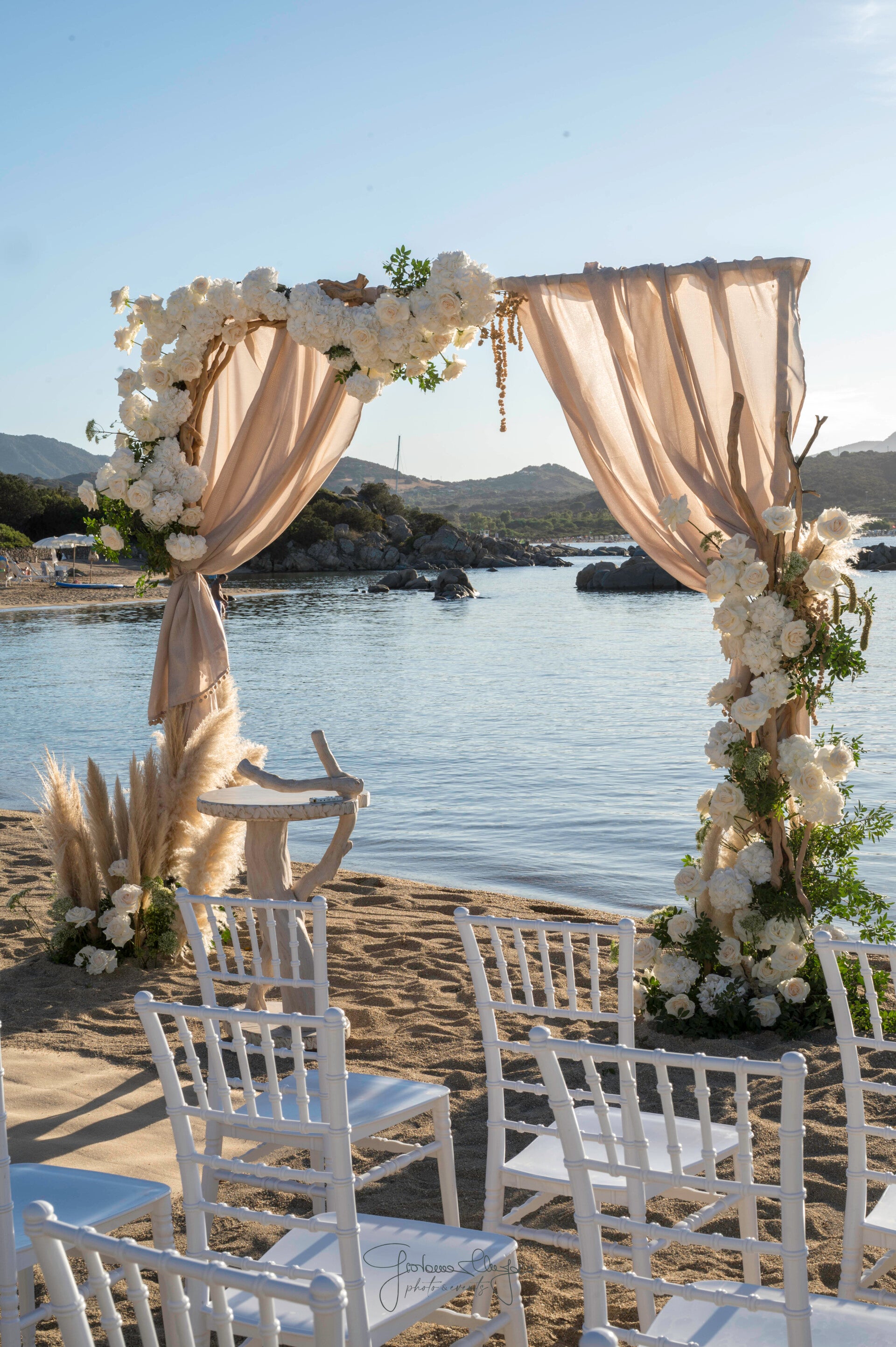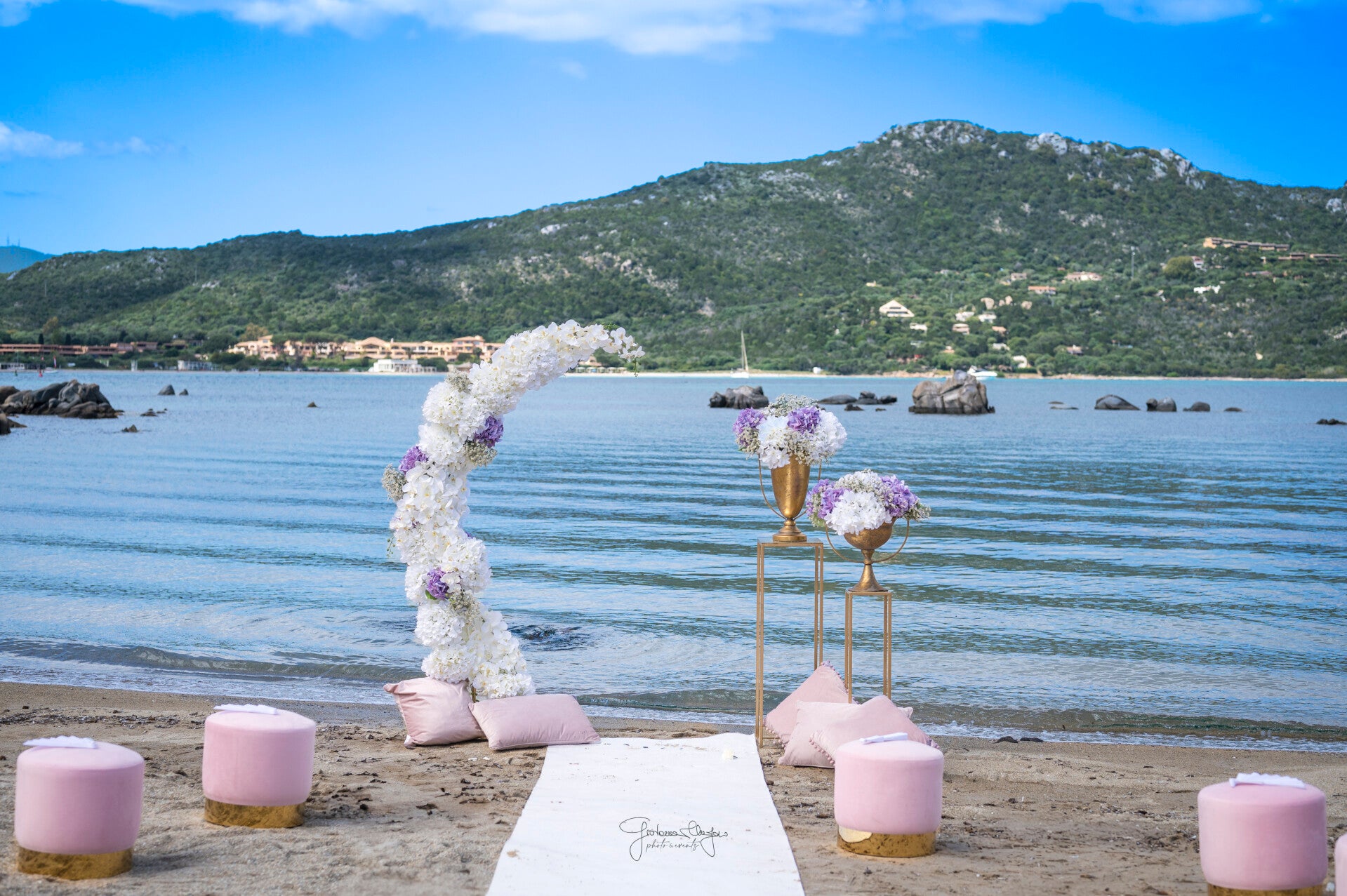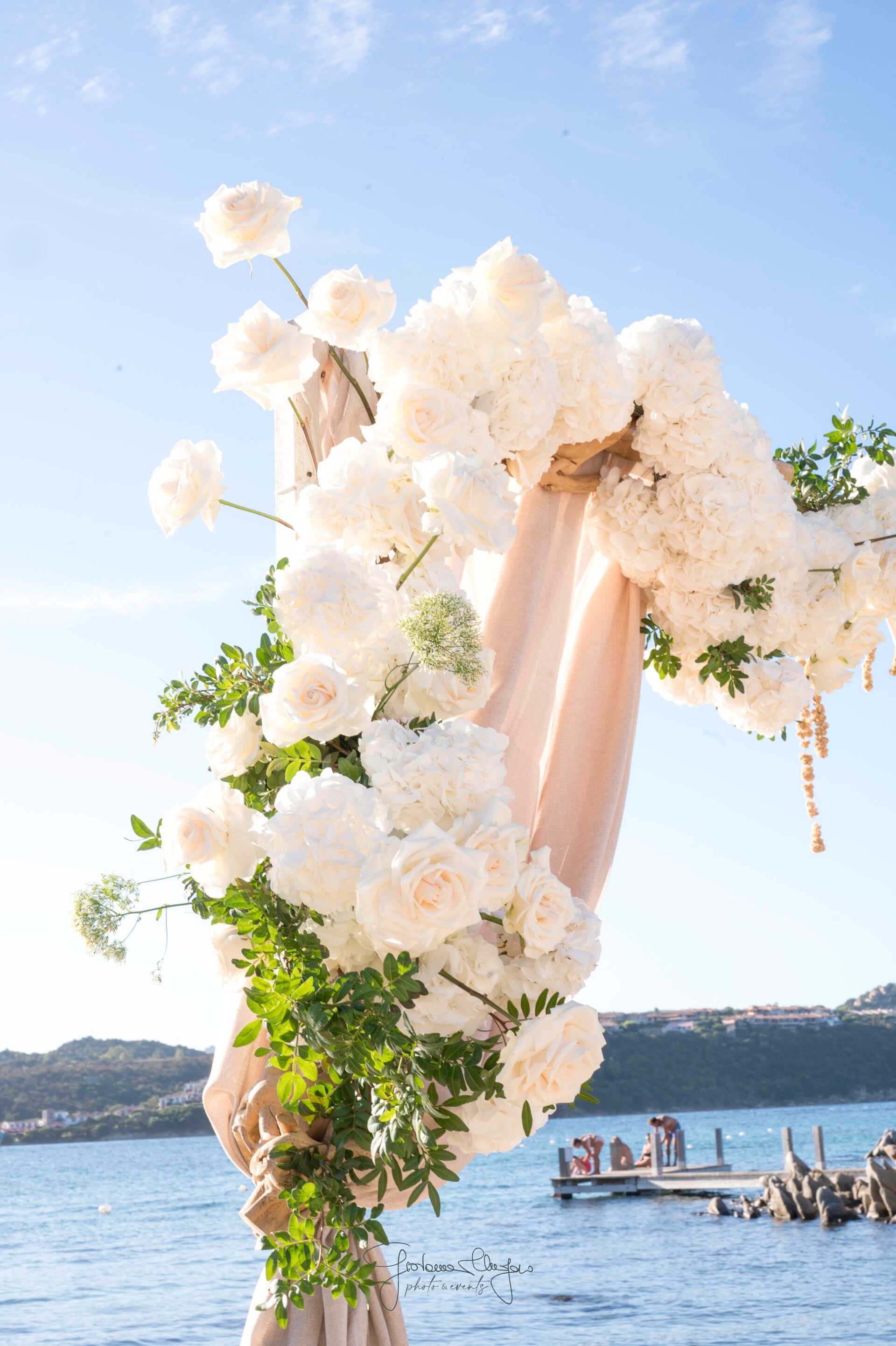 With carefully selected blooms, balanced compositions, and a bespoke artistic approach, each arrangement is designed to complement the sea, the light, and the natural beauty of the location with timeless sophistication.