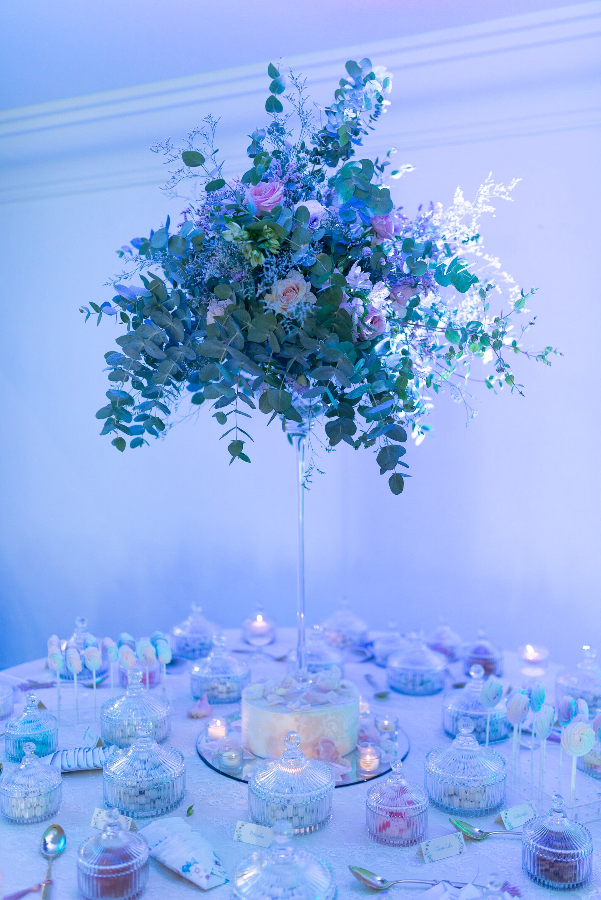 The dessert buffet is conceived as an elegant and indulgent finale to the wedding celebration.